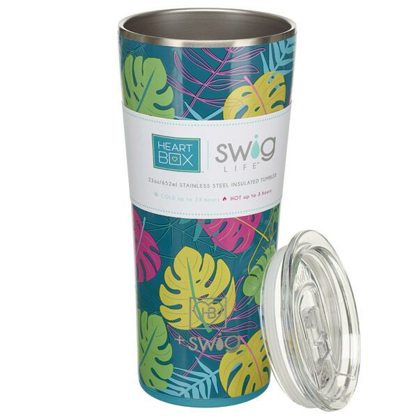 This exclusive HeartBox x Swig drink tumbler offers triple insulation technology to keep your drinks cold for up to 24 hours and hot up to 3 hours! Its fun tropical palm leaf pattern will have you feeling like you’re sipping on the beach even when you’re at work, home, or on the go.