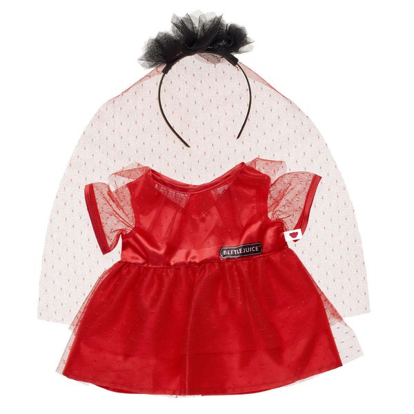 Dress your furry friend just like Lydia Deetz from Beetlejuice with this red dress and veil for stuffed animals. Your Lydia Deetz plush can recreate the memorable wedding scene from the film!