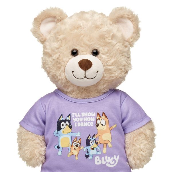 Get ready to dance with Bluey and Bingo! Get any furry friend into dance mode by dressing them in this purple Bluey plush tee.