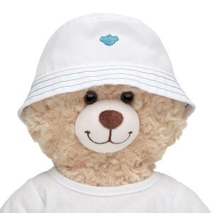 This white and blue bucket hat is the perfect size for your furry friend’s head.