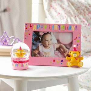 Shake it up for their birthday! This fun waterball is designed to look like a pink icing birthday cake with a teddy bear topper. Shake the water ball like a snow globe to watch the birthday confetti swirl and sparkle inside!