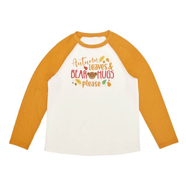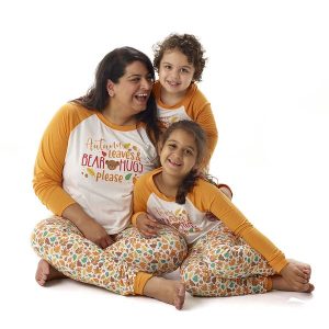 Autumn leaves and bear hugs please! This orange and white knit PJ top for adults features a fun fall graphic on the front. The perfect style choice for staying warm and cozy! Build-A-Bear Pajama Shop™ styles are available in adult, youth and toddler sizes, so the whole family can have fun matching in their PJs!