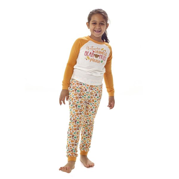 Autumn leaves and bear hugs please! This orange and white knit PJ top for toddlers features a fun fall graphic on the front. The perfect style choice for keeping little cubs warm and cozy! Build-A-Bear Pajama Shop™ styles are available in adult, youth and toddler sizes, so the whole family can have fun matching in their PJs!