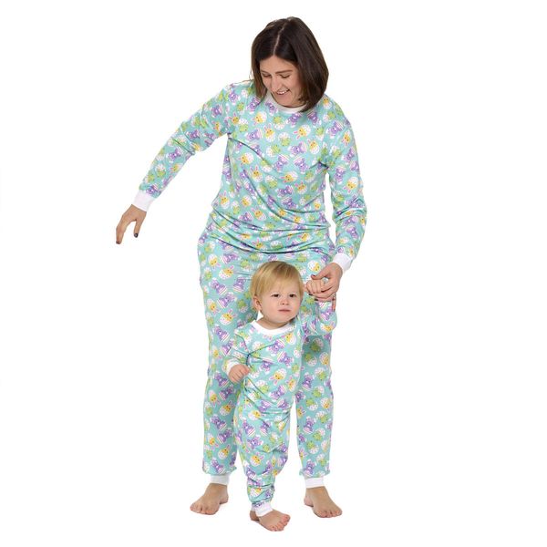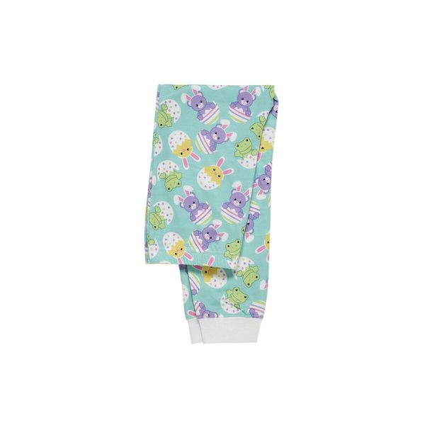 Whether they’re hopping off on an egg hunt or hopping into bed, keep little ones comfy with this adorable pajama bottom. This comfy pair of PJ pants features a pastel print of cute little animals in Easter eggs. Available in both toddler and youth sizes. Made from 95% polyester and 5% spandex materials. Toddler sizes: 2T, 3T, 4T, 5T, 6T. Youth sizes: Y8, Y10, Y12, Y14.