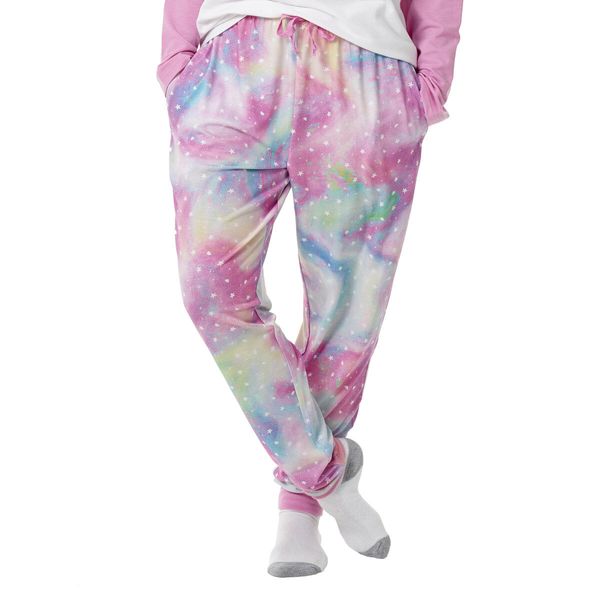 Transport yourself to a rainbow dreamland with this colorful pair of pajama pants. This comfy pair of adult joggers features a groovy rainbow galaxy print.