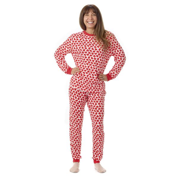 Make Valentine’s Day extra sweet by curling up to sweet dreams in this adorable red hearts PJ top for adults.