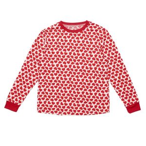 Make Valentine’s Day extra sweet by curling up to sweet dreams in this adorable red hearts PJ top for adults.