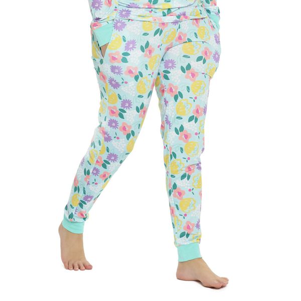 Put a little spring in your step with this comfy and colorful pair of PJ pants. The bright jogger pants feature an all-over print of pastel florals to get in the swing of spring! Made from 95% polyester and 5% spandex materials. Adult sizes: S, M, L, XL, 2XL.