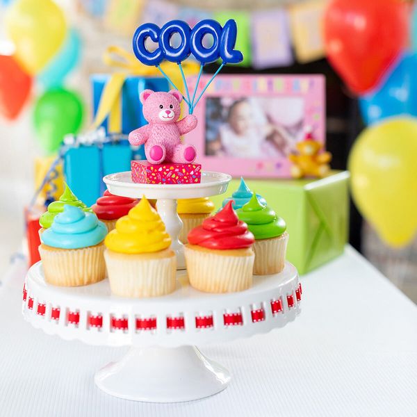 Make any special milestone memorable with a gift from Build-A-Bear! This pretty pink teddy bear sits on a pink base featuring a colorful pattern of rainbow hearts. This ceramic bear’s left paw has an opening so it can hold special Build-A-Bear balloon decorations. Mix and match with celeBEARation numbers and sentiment balloons to personalize their bear and make the perfect gift!