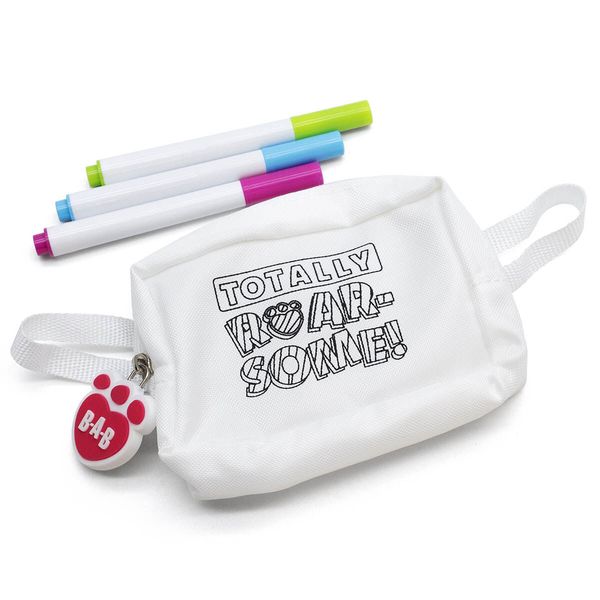 - Pencil pouch with three markers for customizing