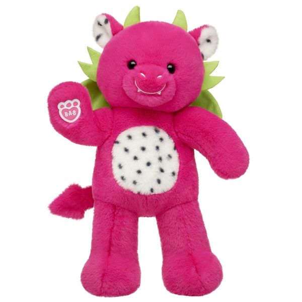Pick a new friend at the Build-A-Bear Fruit Stand! With its bright pink and green fur in tandem with its black and white spotted tummy and ears, this dragon plush is as unique as its namesake fruit! Make a freshly squeezed friendship and fly away with this adorable Dragon Fruit Dragon plush today.