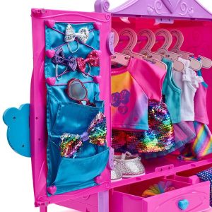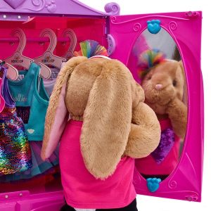 Keep all of your furry friend’s outfits and accessories organized inside this Fancy Fashion Boutique! This toy fashion case includes a mirror, a bar for hanging clothes, drawers, elastic holders and pockets. Organization has never been this cute and cuddly! This functional toy fashion set makes a great gift for any stuffed animal collector. (Furry friends, outfits and accessories sold separately.)
