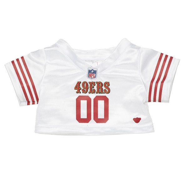 Happy Hugs Teddy’s end zone celebration includes lots of hugs for every fan! Celebrate the San Francisco 49ers with this cute football bear gift set. The collectible bear wears an officially licensed San Francisco 49ers jersey, fan hat, denim jeans and black shoes. It also comes with a plush BAB football to score big with the 49ers fan in your life!