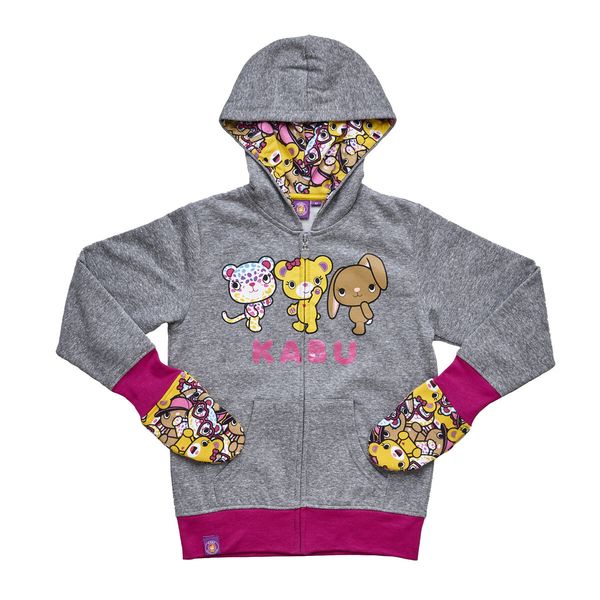 Explore the world of Kabu in style! Kabu friends go through all the adventures of life together – paw in paw. This ultra-cool Kabu hoodie will keep your paws warm with the special gloves on each sleeve. Catrina, Bearnice and Pawlette are on the front and the hood features an all-over pattern of your favorite Kabu friends!