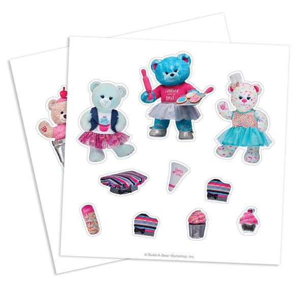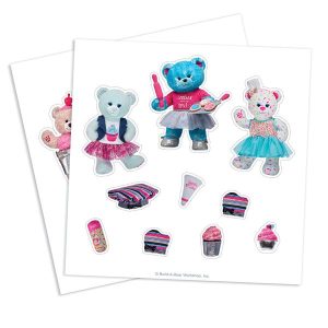 This set contains 7 three-inch square tiles, 1 equilateral triangle tile and 2 sheets of reusable Build-A-Bear® cling stickers.