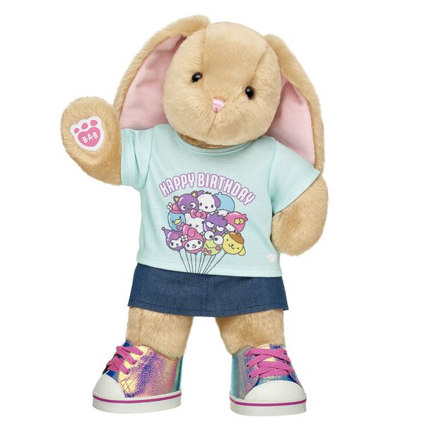 Hop to it and celebrate their birthday with Pawlette and all their favorite Sanrio® characters! This plush gift set includes Pawlette the bunny sporting her own Sanrio® Hello Kitty® and Friends “Happy Birthday” tee, denim skirt and rainbow shoes. It’s the paw-fect gift for any Sanrio® fan’s special day!