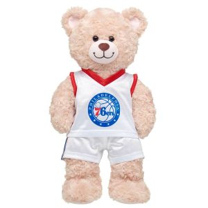 Go 76ers! Your furry friend can show its allegiance to the Philadelphia 76ers of the NBA with this cool basketball uniform! This authentic bear-sized 76ers uniform includes a jersey and shorts so your bear is ready to hit the court.