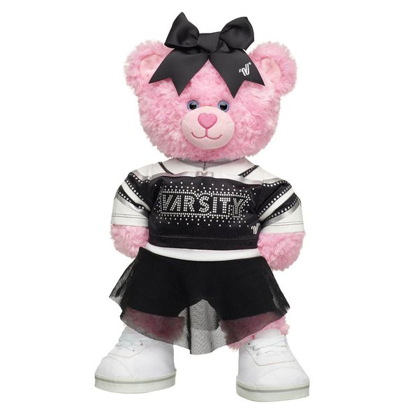 Pink Cuddles Teddy is a true all-star! This spirited pink teddy bear is ready to win any cheer competition dressed in its black Varsity Spirits All-Star uniform. The cheer fan in your life will be tickled pink with this gift set.