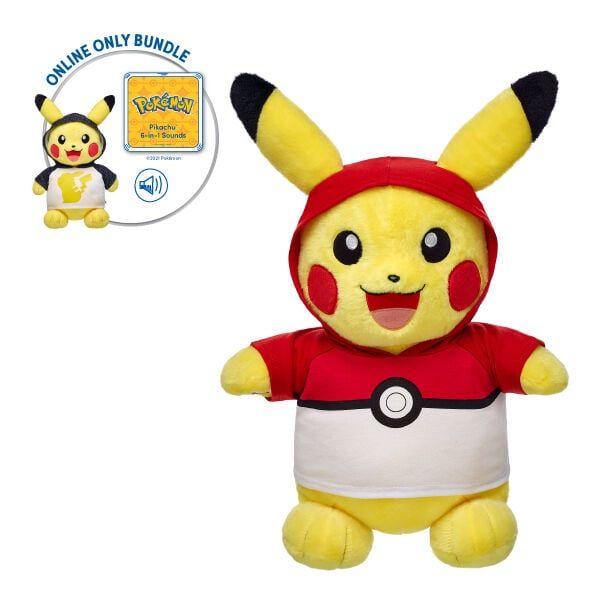 The adorable Pikachu is a must-have addition to any Pokémon Trainer’s team! This Electric-type Pokémon has bright yellow fur and a lightning bolt-shaped tail. Pokémon Trainers will love this exclusive bundle which includes Pikachu along with two awesome hoodies and a 6-in-1 sound chip!