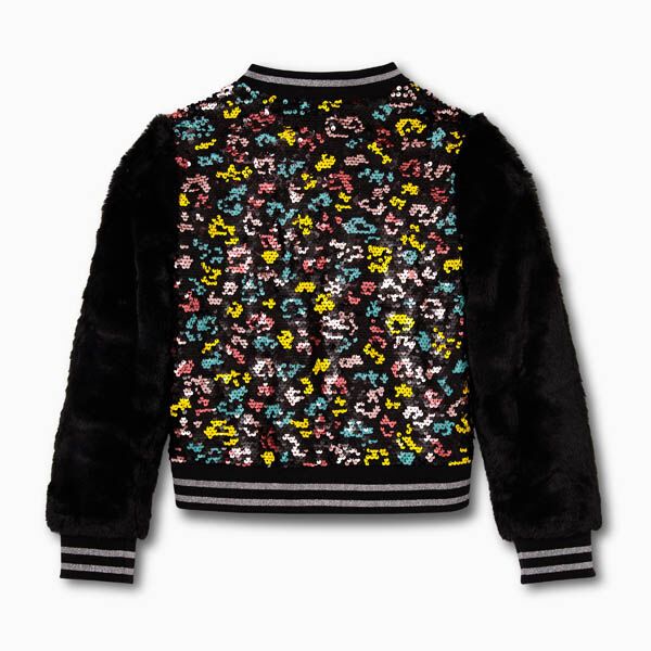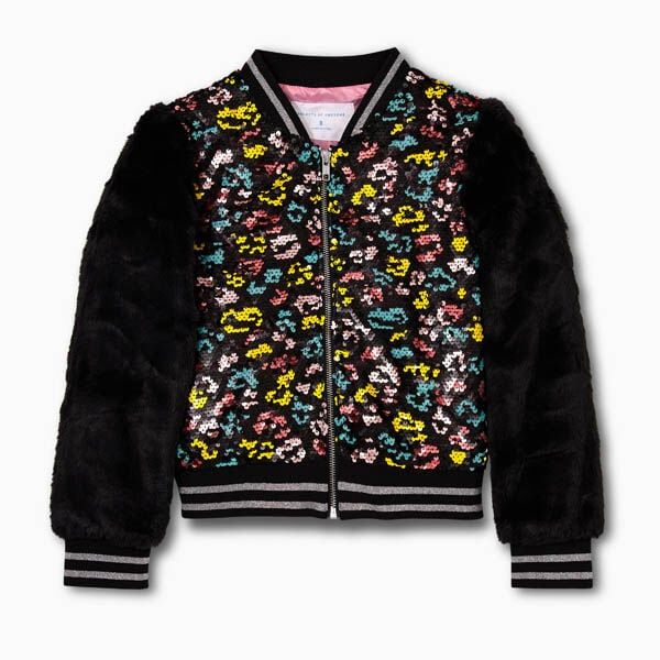 This colorful Rockets of Awesome bomber jacket is sure to make a fierce addition to their wardrobe! The black bomber jacket features a stylish all-over print in shades of blue, pink and yellow.