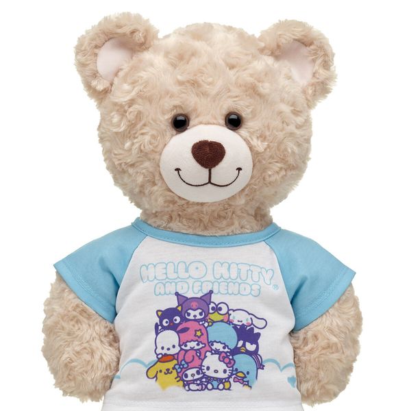 Make sure your friend is always looking stylish by dressing them in this cute tee! This blue and white T-shirt for stuffed animals features a charming graphic of Hello Kitty with a group of her adorable Sanrio friends.