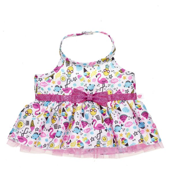 Your furry friend will be stylin’ for summer in this fashionable halter dress. This colorful dress has an all-over print of cute summer graphics.