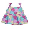 This adorable maxi dress for stuffed animals has three tiers of pink, yellow and blue stripes.