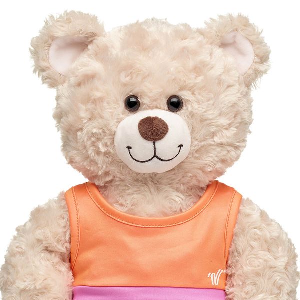 Get your bear ready for cheer practice dressed in this neon orange and pink Varsity Spirit sports bra.